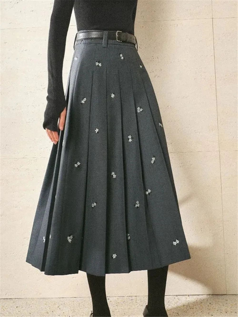 가을용 럭셔리 플라워 프린트 롱 스커트: 사이즈도 다양한 하이웨이스트 A라인 스커트