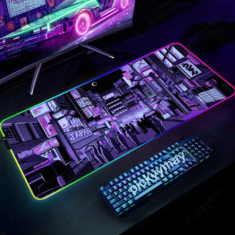 대형 LED 책상 매트, XXL RGB 컴퓨터 마우스 패드, 일본 도시 픽셀 데스크탑 패드, 백라이트 키보드 매트, 테이블 패드, 게이머 발광 마우스 패드