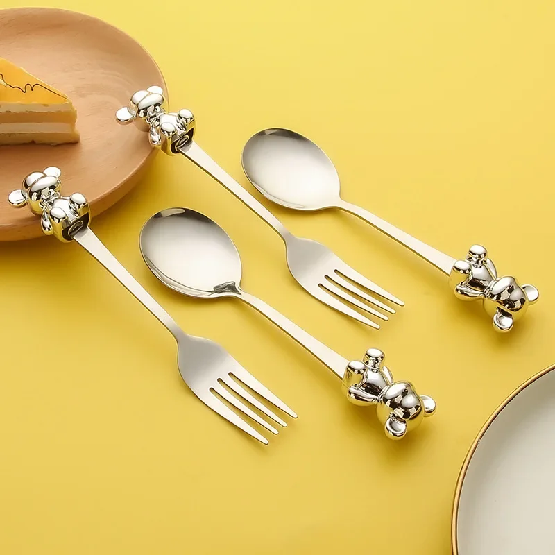 크리에이티브 귀여운 곰 커피 디저트 스푼 포크, 스테인리스 스틸 커피 교반 차 디저트 스푼, 귀여운 만화 곰 디너 스푼