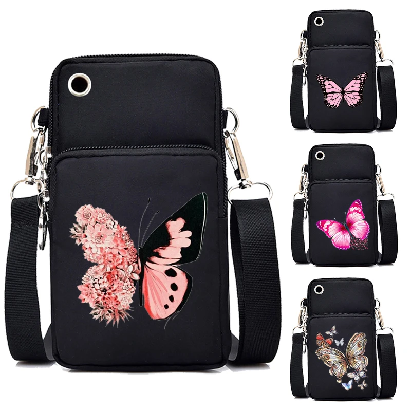 귀여운 핑크 빈티지 나비 패턴 크로스 바디백, 여성용 꽃 모티프 지갑과 함께하는 편안한 소형 핸드백, 십대소녀를 위한 미니 휴대전화 가방