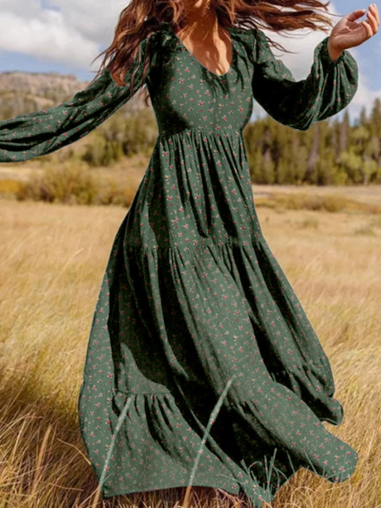 긴소매원피스 여성용 레이온 프린트 드레스, 긴 소매 슬림핏, 빅 스윙 롱 드레스, 오버사이즈 신부 들러리 드레스, 2023 봄 여름 신상