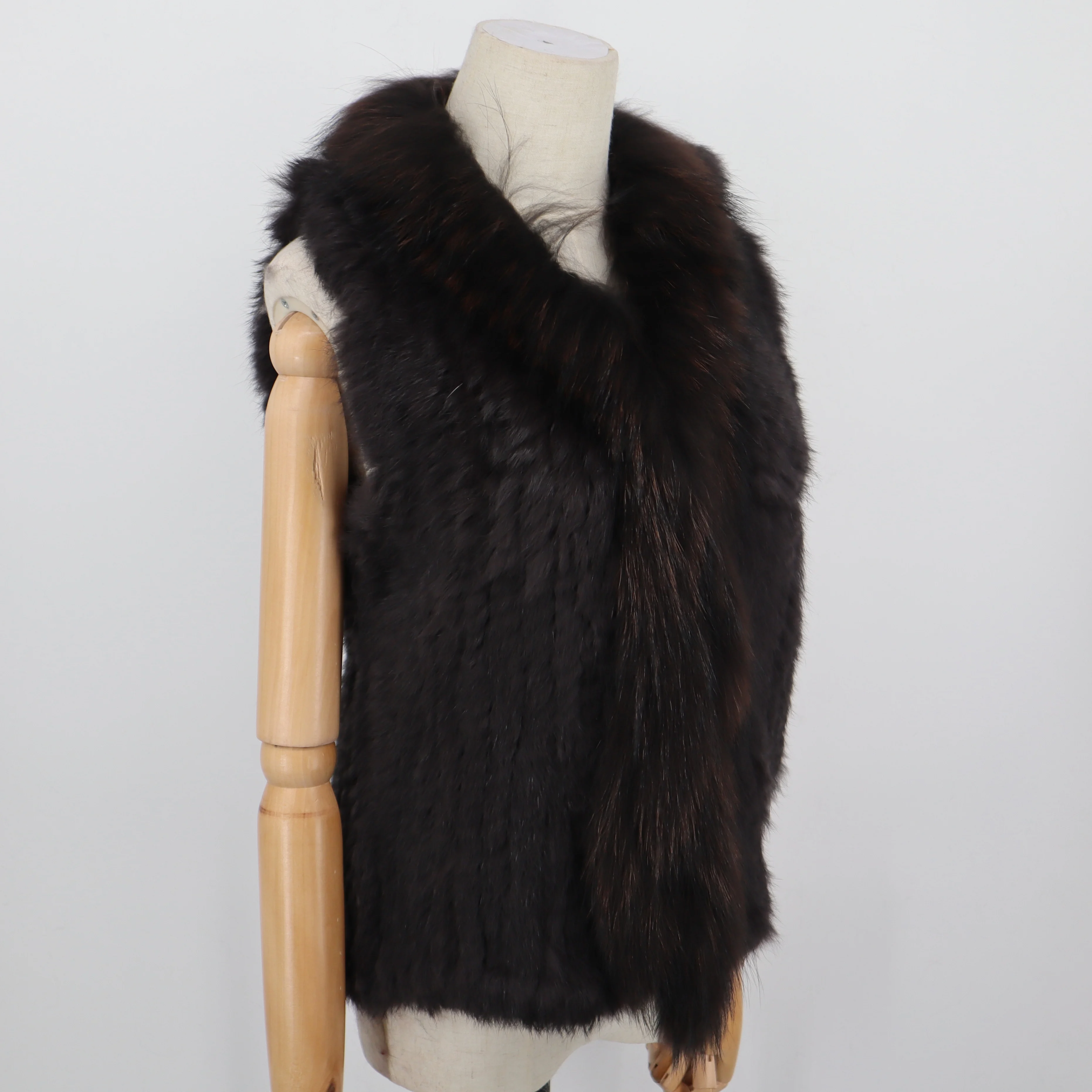 니트조끼 여성용 니트 민소매 모피 조끼, 천연 너구리 모피 재킷, 여성용 코트, 진짜 토끼 패션, 고급 모피 조끼, 2021 패션