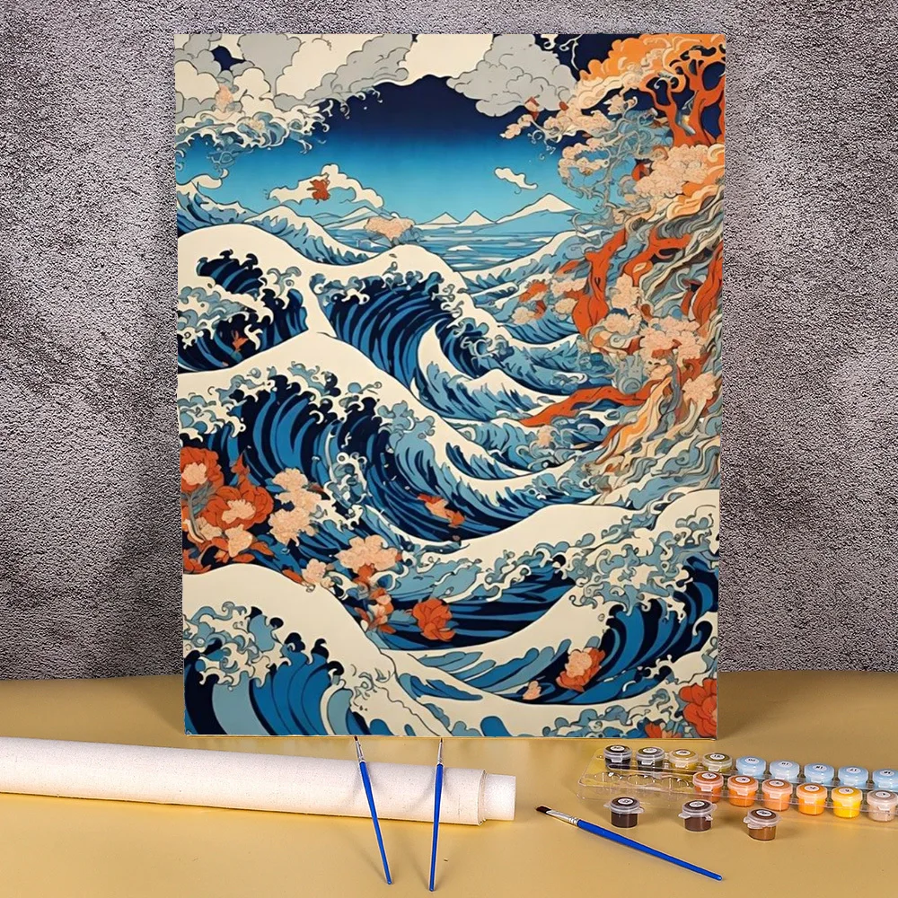 드로잉 캔버스에 그림 그리기 성인용 숫자 별 아크릴 페인트 키트, 바다 풍경 그림 DIY 홈 장식, 바다 파도