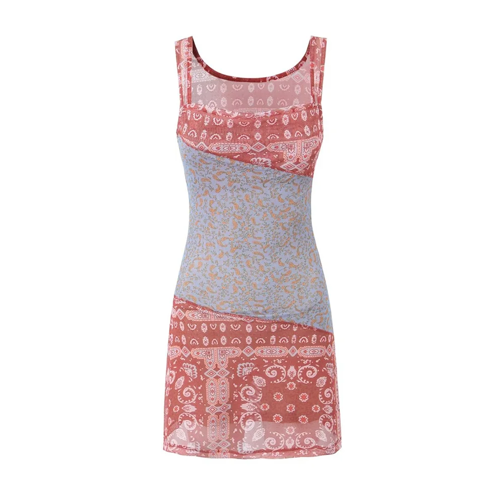 민소매 레드 넥 마운트 미니 드레스 여성용, 여름