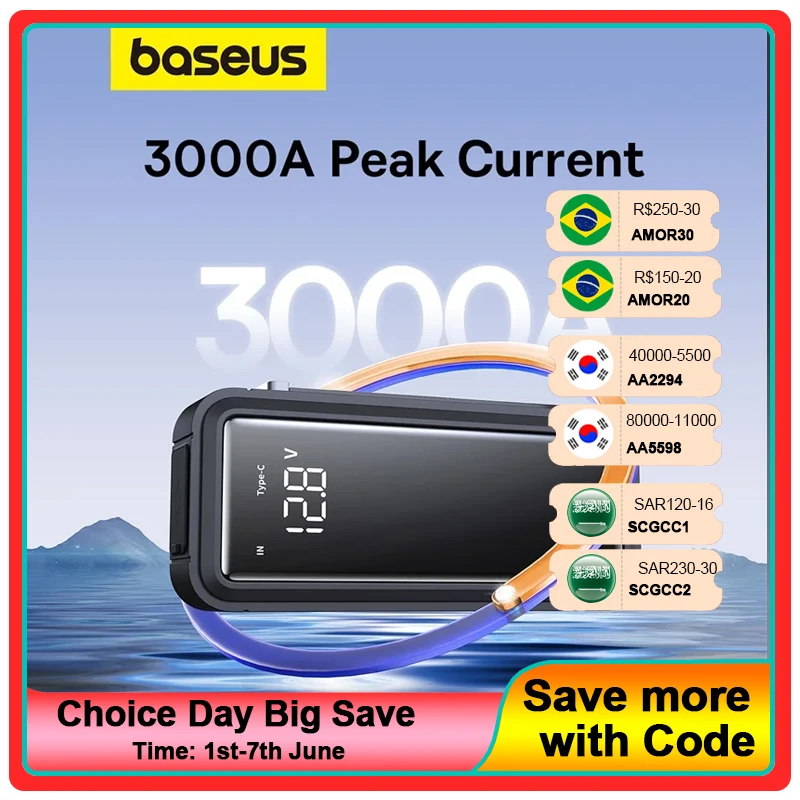 Baseus 슈퍼 캐패시터 자동차 점프 스타터, 3000A 자동차 부스터 장치 충전기, 배터리 없는 휴대용 자동차 시동, 비상 장치