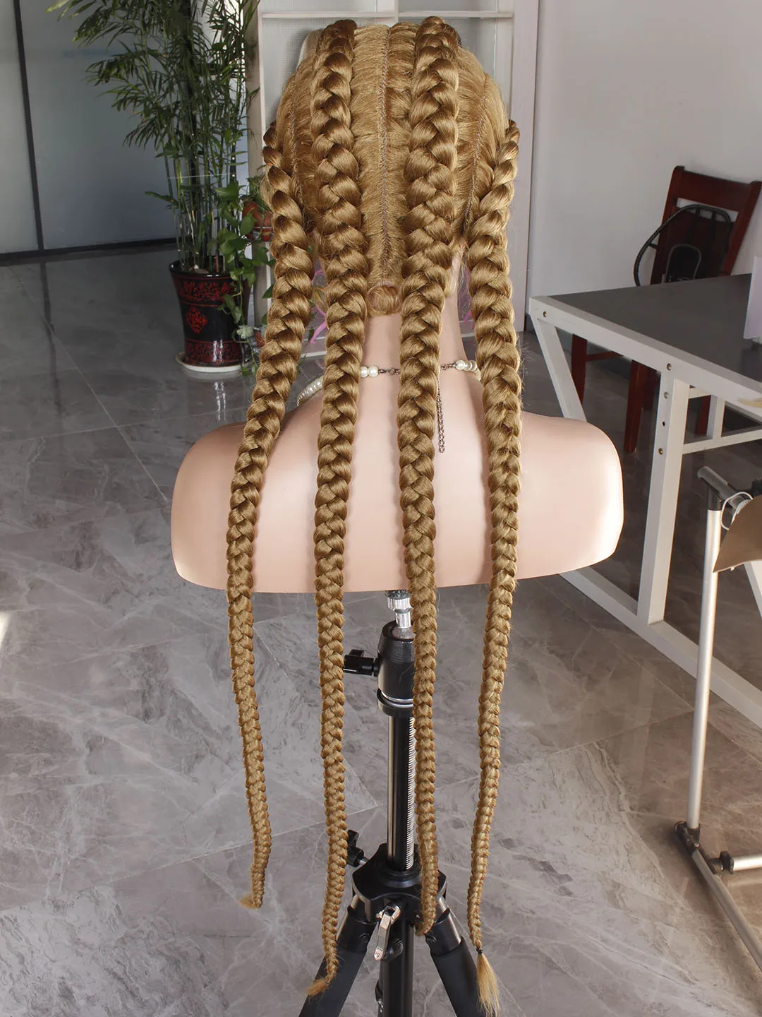 손으로 땋은 상자 땋은 레이스 가발, 아기 머리 색상, 27 금발 슈퍼 롱 콘로우 가발, 흑인 여성용 합성 브레이드 가발