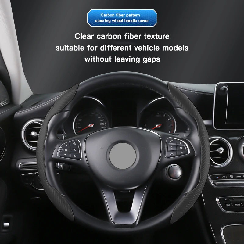 스티어링휠 커버 탄소 섬유 패턴 자동차 핸들 커버, 스웨이드 땀 흡수, 미끄럼 방지, 초박형 핸들바 커버, 사계절
