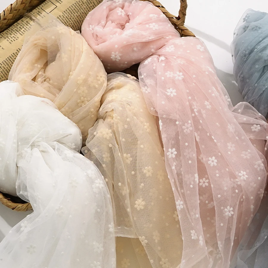 스포이드 작은 흰색 꽃 부드러운 메쉬 원단, 웨딩 드레스 의류 장식, 배경 수제 원단, 150x100cm, TJ5103
