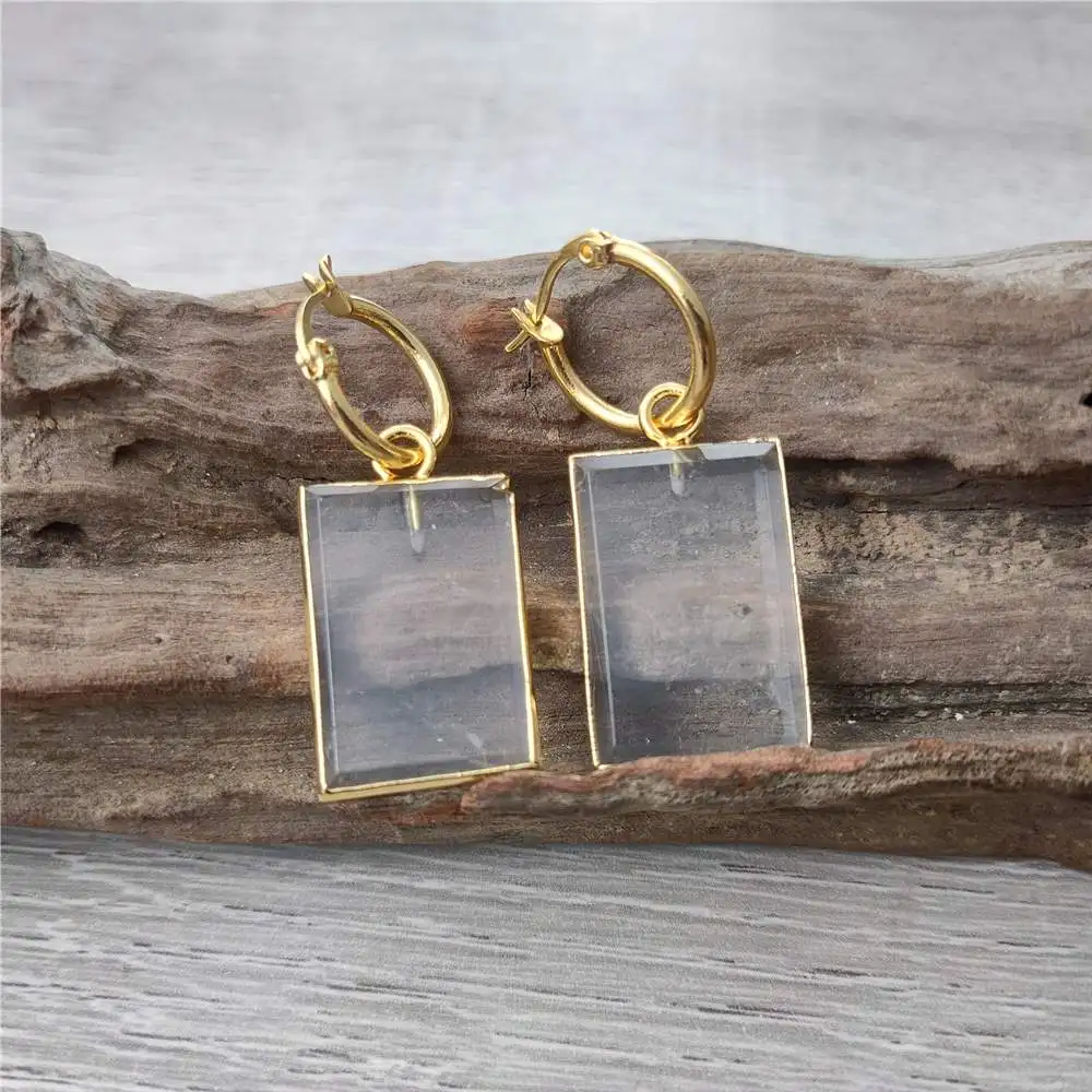 신상귀걸이 FUWO 직사각형 투명 석영 후프 귀걸이, 우아하고 정교한 주얼리, 모든 행사용 ER431, 로트당 5 쌍