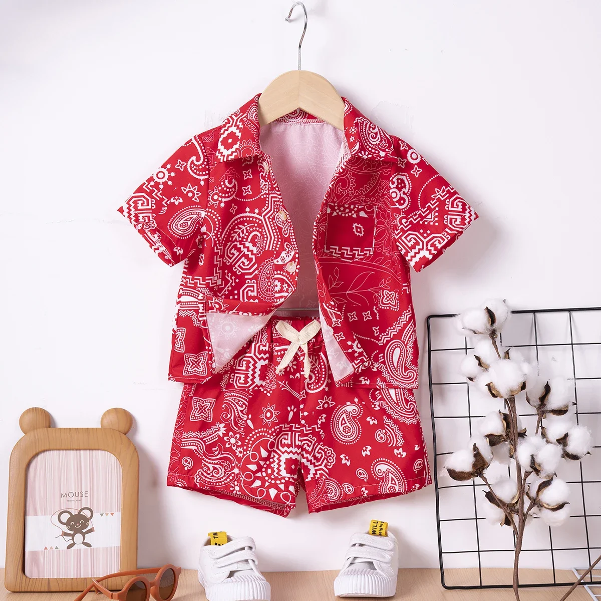 유아용 페이즐리 패턴 여름 세트, 반팔 셔츠 및 캐주얼 반바지, 남아용 의류, 2 개