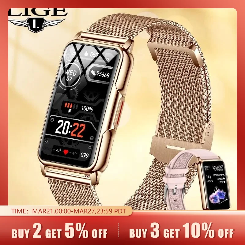 여성시계 LIGE 스마트 워치 풀 터치 스크린 블루투스 통화, IP67 방수 스포츠 피트니스 트래커, 여성 스마트워치