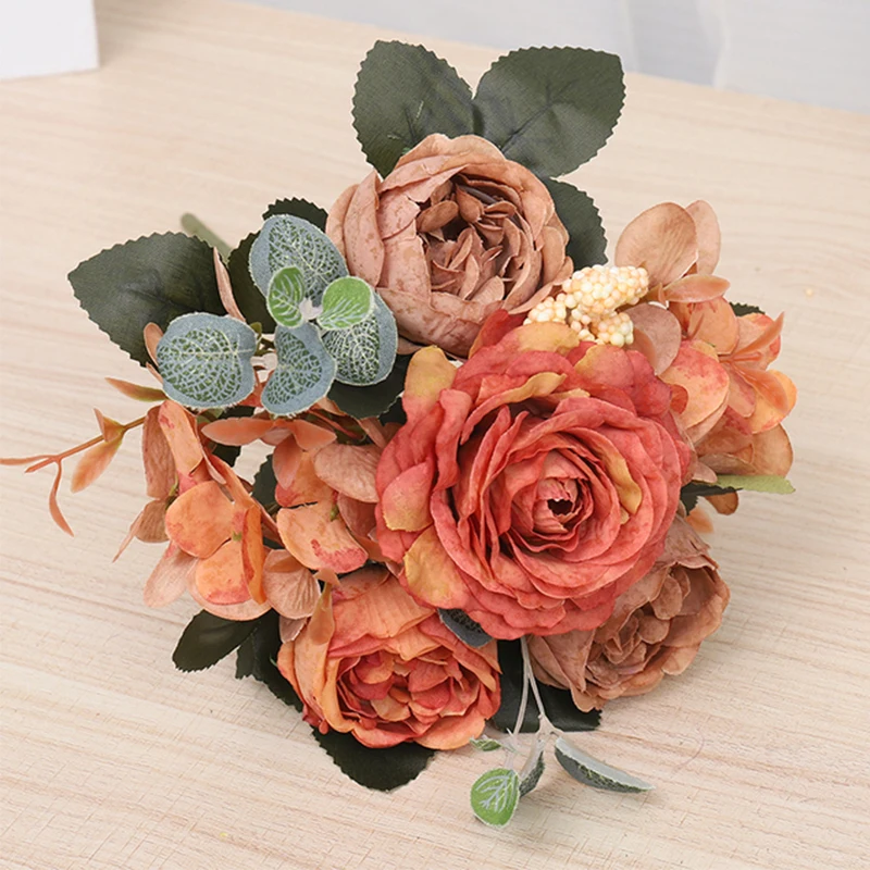 유럽 스타일 소재로 만든 모란 인공 꽃, 가짜 꽃다발, 가정 장식품, 결혼식 장식품, 파티용 신부 손에 들리는 꽃꽂이