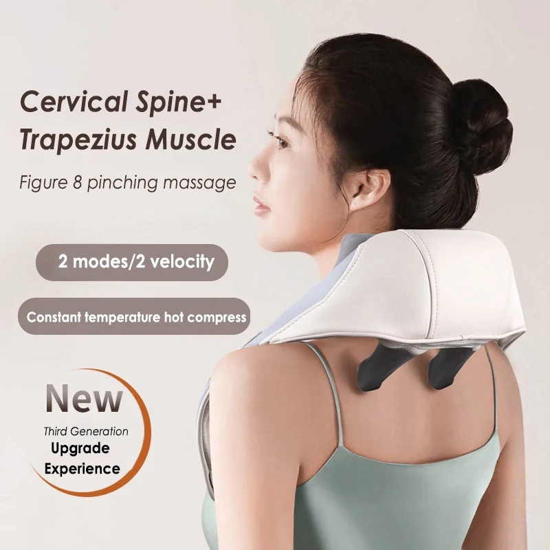 Mebak 무선 목 어깨 마사지 베개, 목과 등, 승모근 목 등 마사지 숄