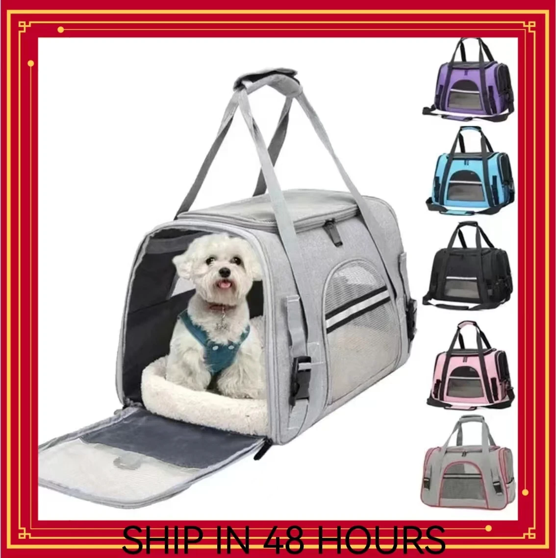 두꺼운 코튼 쿠션이 달린 개 캐리어 가방, 애완 동물 항공 배낭, 질식 방지, 휴대용 여행 가방, 애완견 메쉬 야외 가방