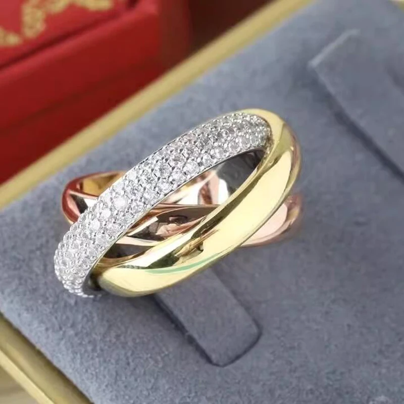 쥬얼리보석 하이 퀄리티 여성용 스털링 실버 트리니티 반지, 절묘한 삼색 원형 다이아몬드 반지, 패션 브랜드 럭셔리 주얼리, 925