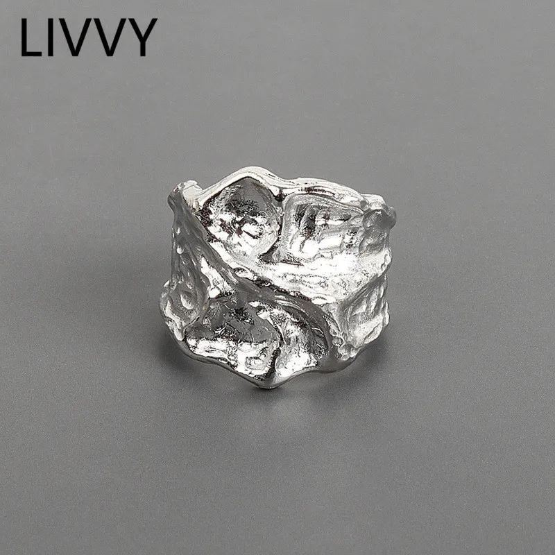 LIVVY-실버 컬러 반지, 빈티지 2021 트렌드 골드 컬러 범프 약혼 여성 패션 주얼리 선물 액세서리