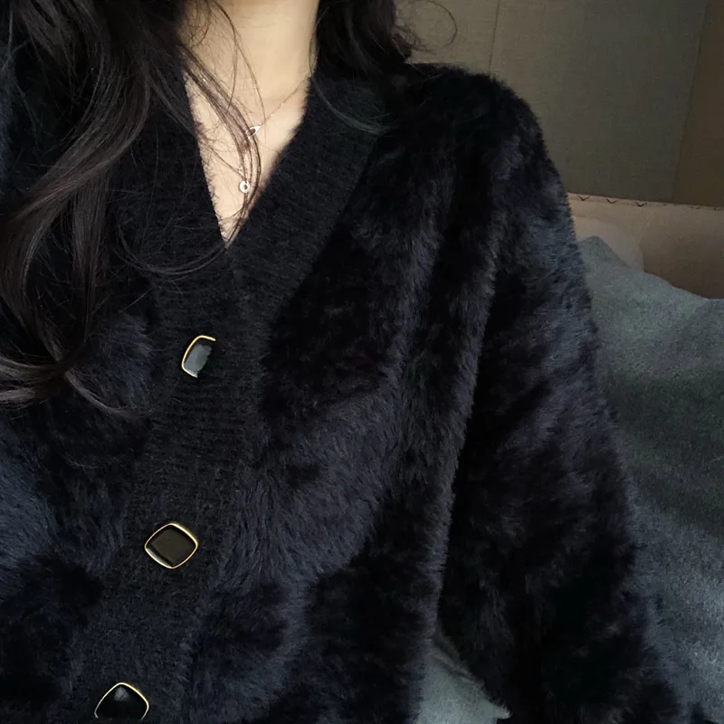 카디건 여성용 긴팔 밍크 니트 가디건 단추 코트, 오피스 레이디 스트리트웨어, 부드러운 한국 패션, V넥 스웨터, 가을, 겨울