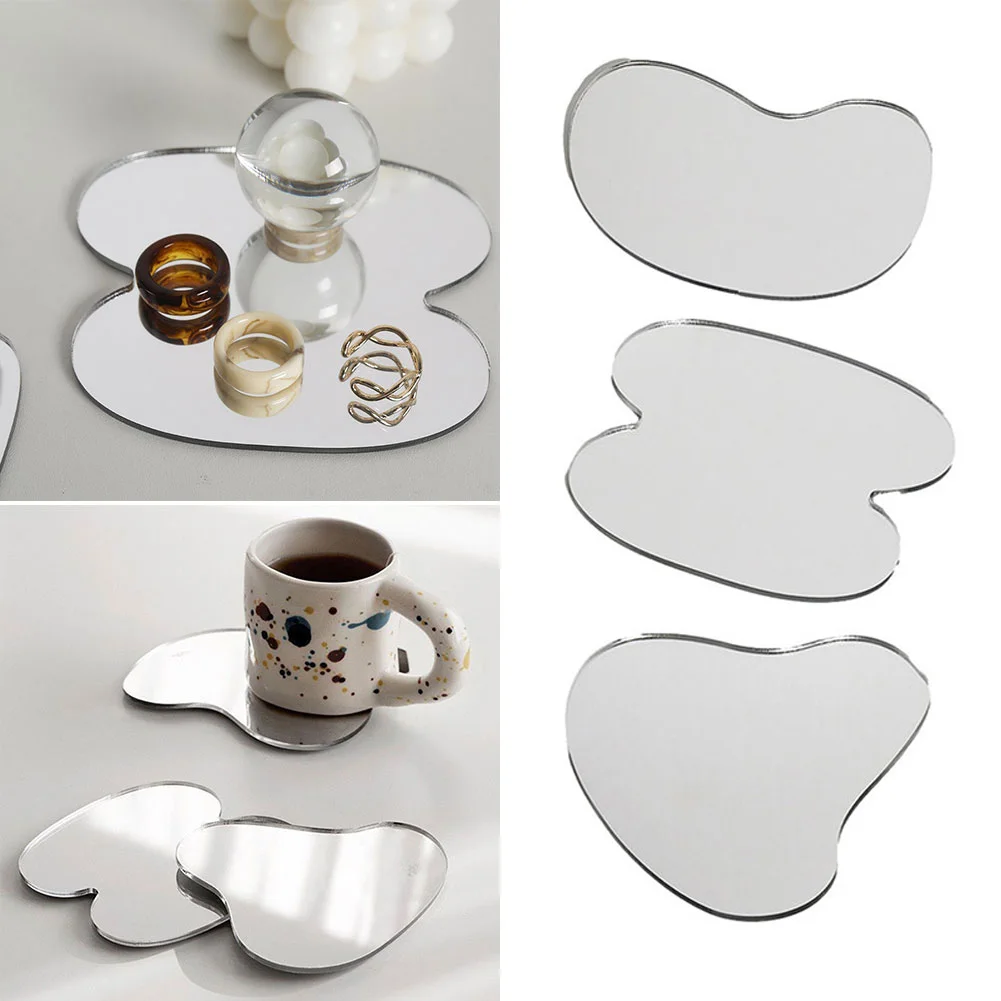 다음은 불규칙한 아크릴 컵 받침 투명 거울 컵 받침, 북유럽 테이블 매트, 데스크탑 장식 장식품, 홈 촬영 소품 컵 받침의 제목을 다시 작성한 것입니다: