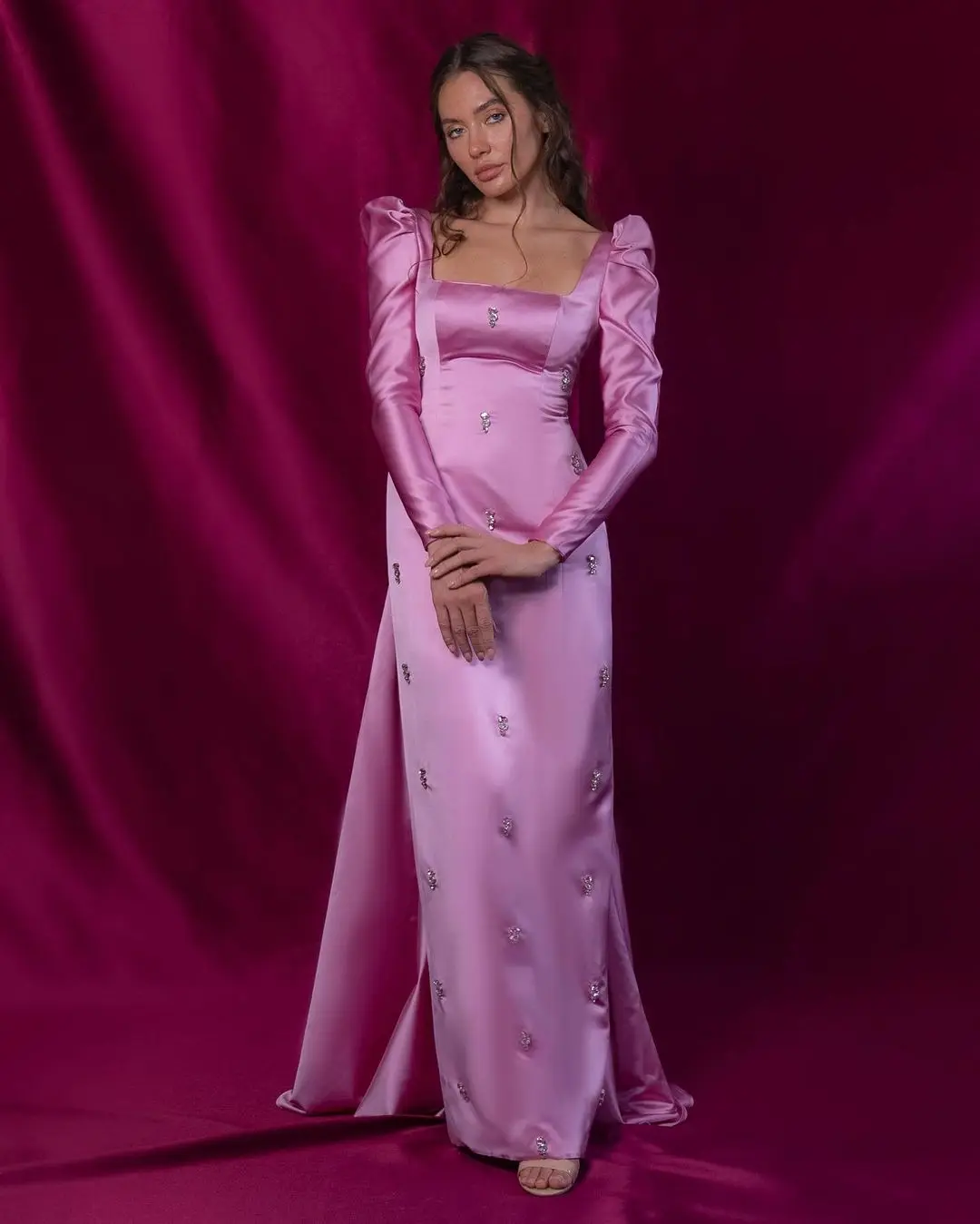 2023 구슬이 달린 긴 소매 백리스 스퀘어 넥 무도회 드레스: 맞춤형 공식 이브닝 드레스