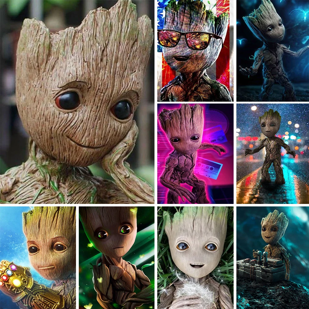 피포페인팅 디즈니 그루트 다이아몬드 모자이크 만화 캐릭터, 풀 라운드 및 스퀘어 드릴, 벽 아트, 홈 데코, 어린이 선물