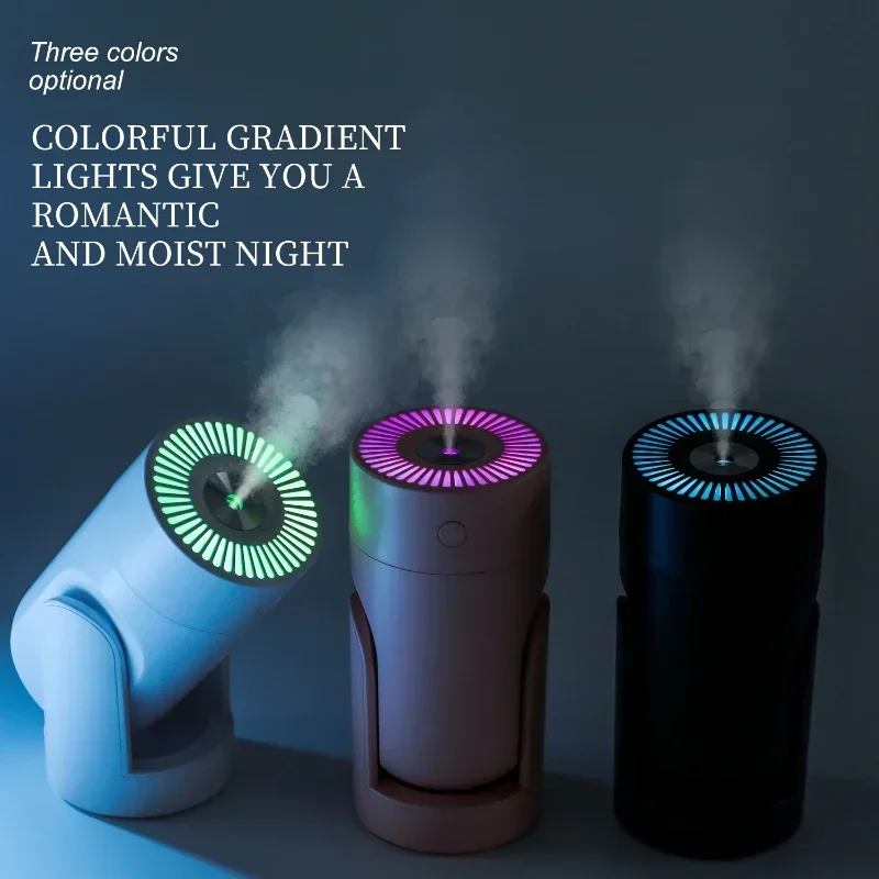 초음파 가습기 미니 휴대용 나노 공기 청정기, 컬러 라이트 포함, 가정용 자동차 USB 각도 조절 가능 무화기 메이커, 220ml
