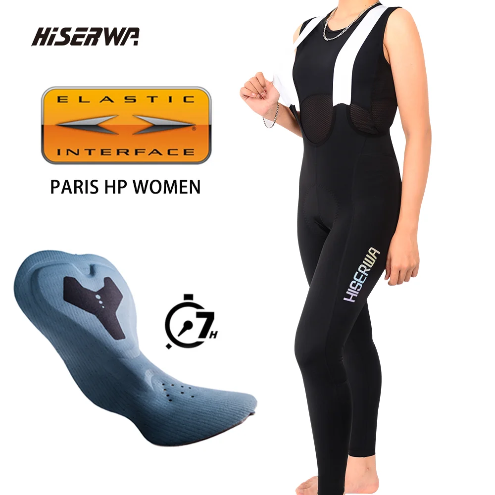HISERWA 여성용 프로 사이클링 턱받이 바지, MTB 라이딩 자전거, 레이스 내마모성, 통기성 자전거 바지