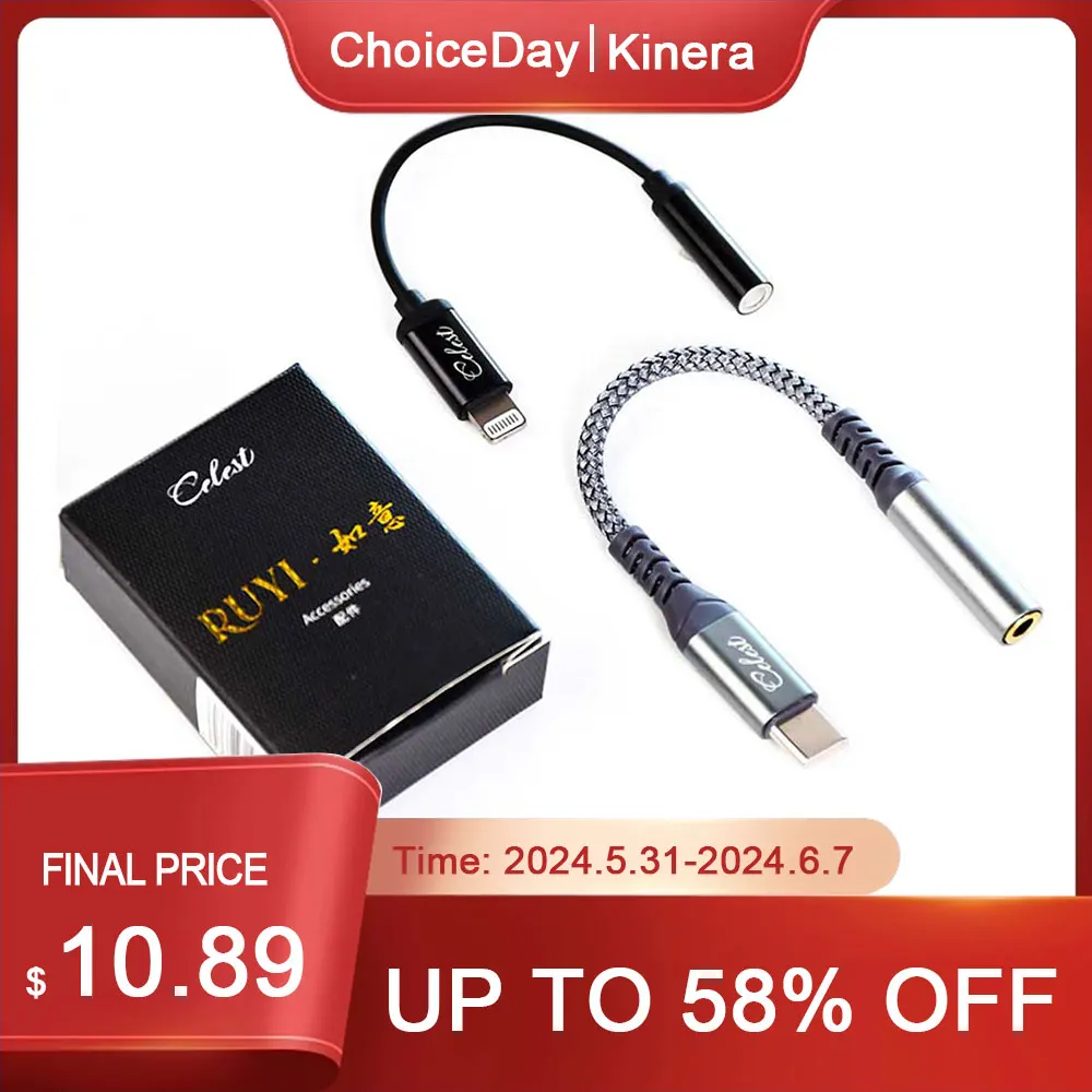 Celest RUYI 이어폰 어댑터 케이블, 3.5mm to C타입 라이트닝, 마이크 음악 게임 E스포츠 라이브스트리밍 IEM 헤드셋용