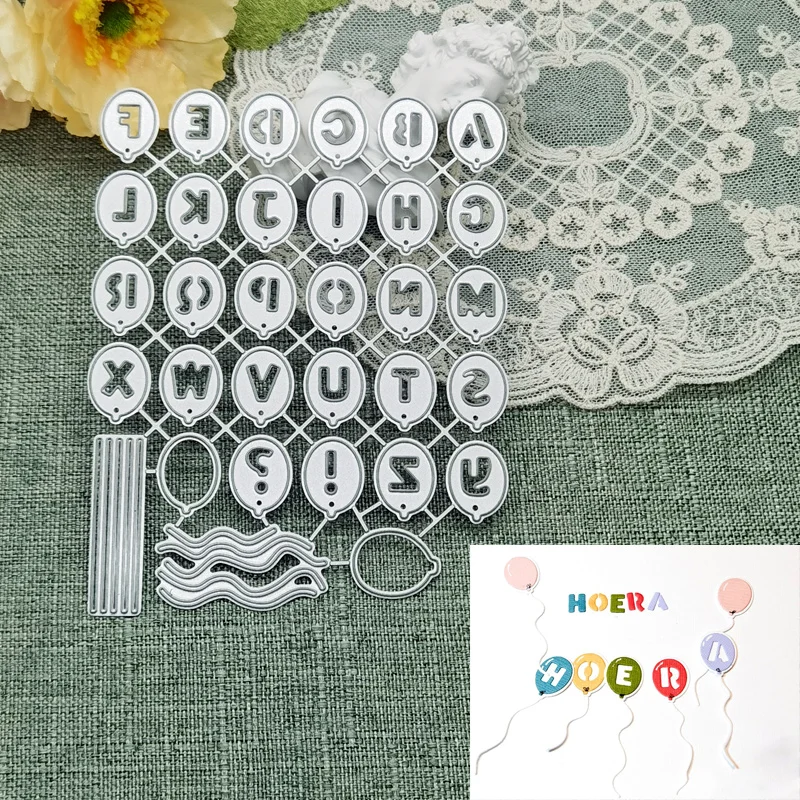 DIY 인사 카드 펀치 스텐실, 26 글자 풍선 태그, 나이프 금형, 스크랩북 엠보싱 템플릿, 수공예 금속 절단 다이