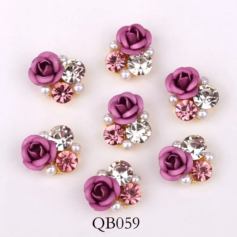 DIY 쥬얼리 밝은 진주 라인석 꽃 디자인 합금 네일 아트 장식, 반짝이 DIY 3D 네일 쥬얼리 펜던트 QB054-063, 10 개 신제품