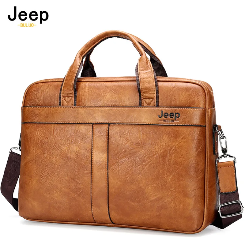 JEEP BULUO High Quality Travel Handbag For Man Men s Business Briefcase Bag Split Leather 14