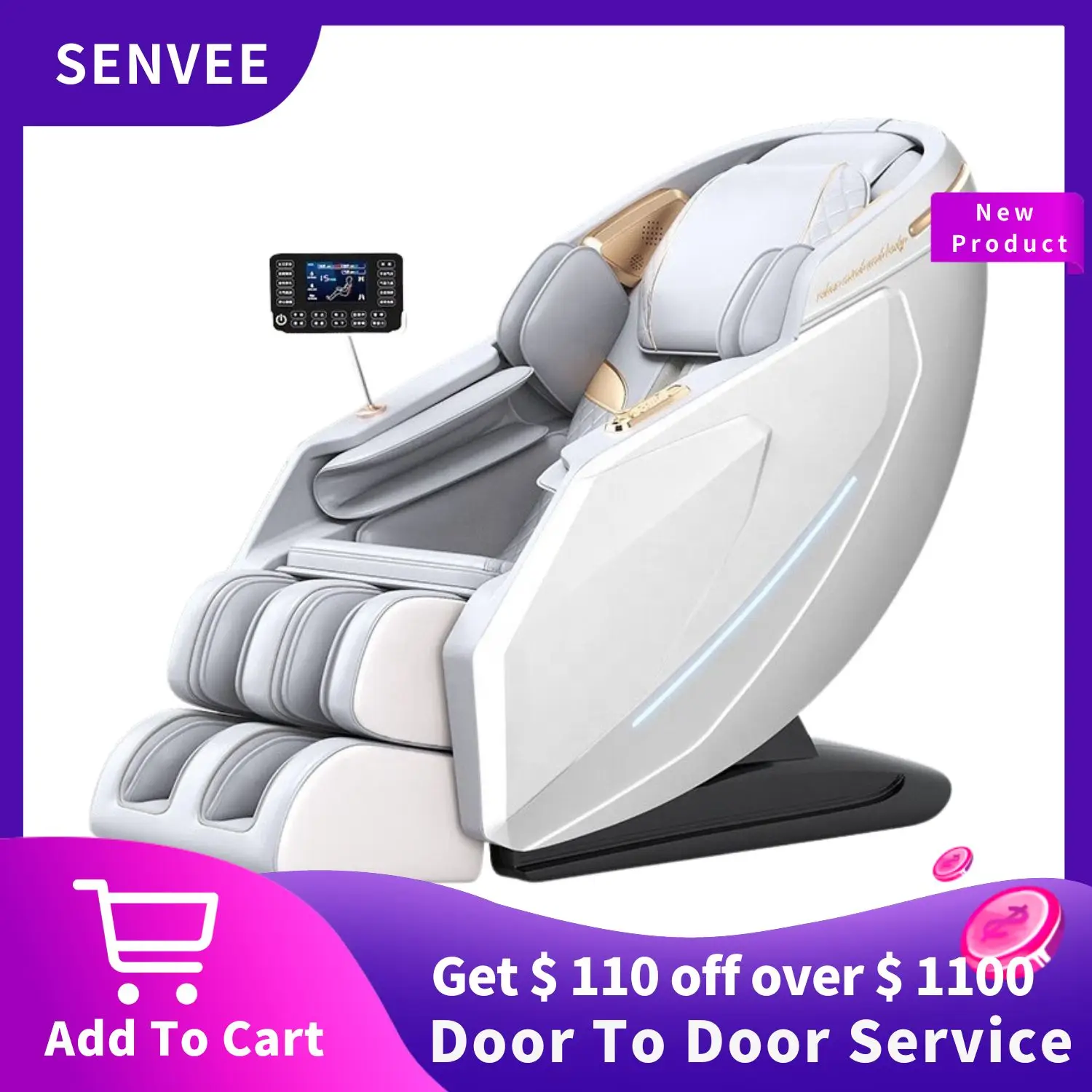 SENVEE 전동 마사지 시트 SL 트랙 의자, 무중력 전동 4D 스마트 마사지 의자, 롤링 전신 기능